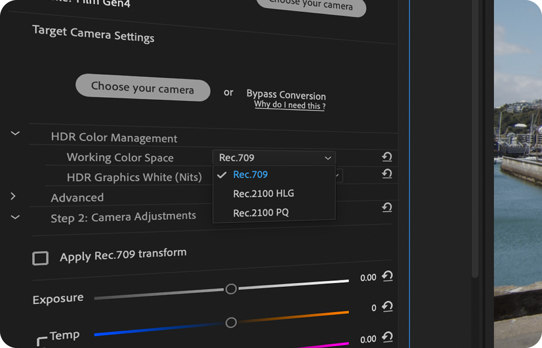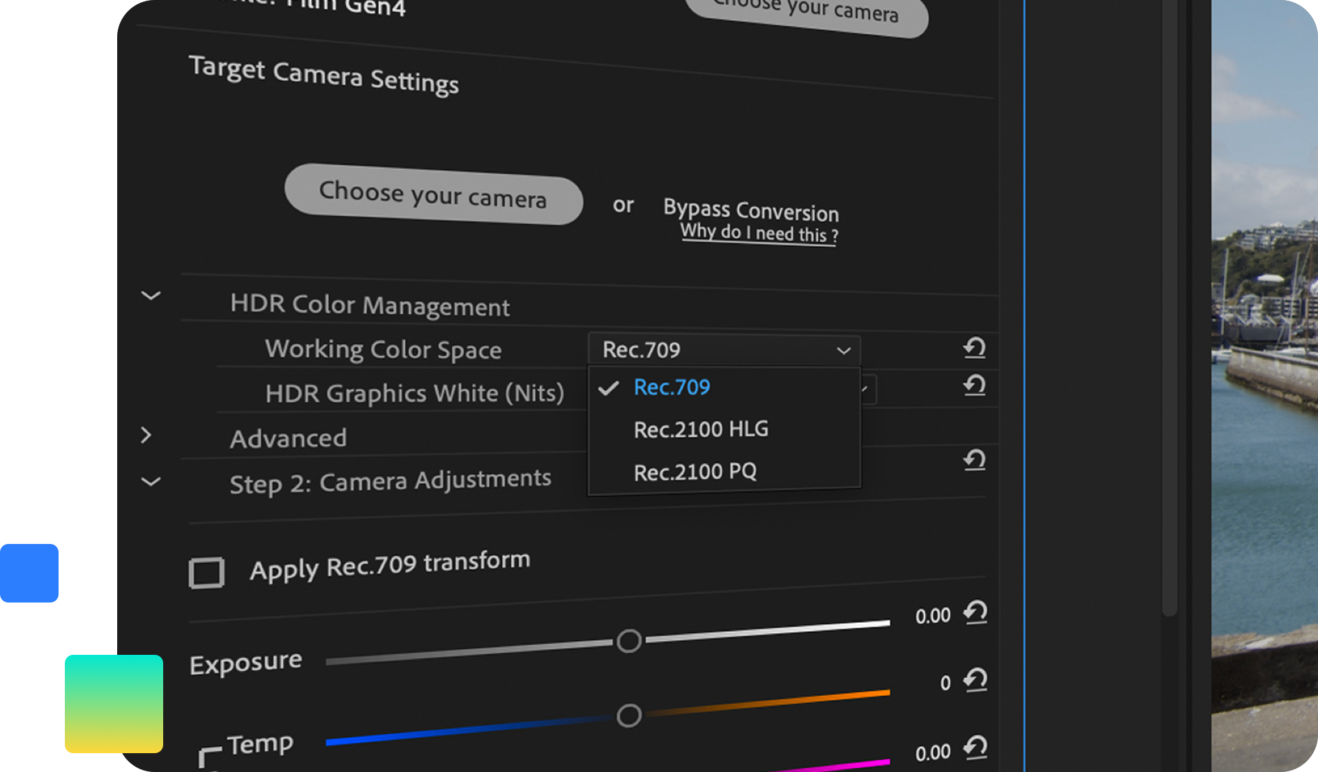 If you are working in Premiere Pro or Final Cut Pro, CineMatch can provide you with HDR supported color management, so your footage can look consistent across different devices and monitors. You can choose the color space you want for your project from Rec.709, Rec.2100 HLG, or Rec.2100 PQ for more control over your project's colors.